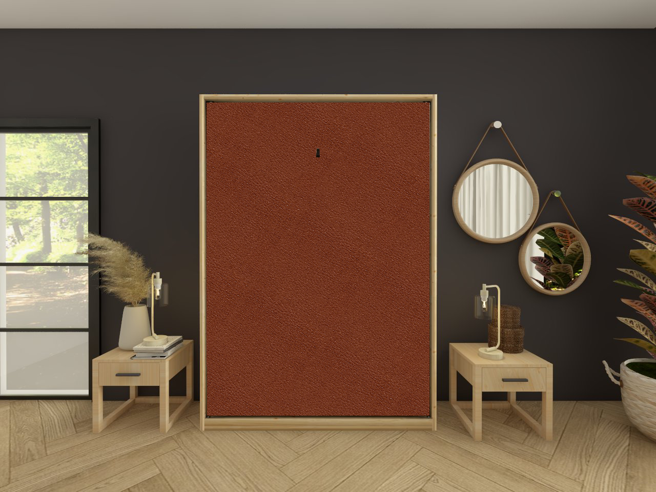 - Verticaal model: oogt als een klassieke kledingkast. Afmetingen: hoogte 220 cm, breedte 105 cm, diepte 40 cm. Uitgeklapt komt het bed 212 cm van de wand af.