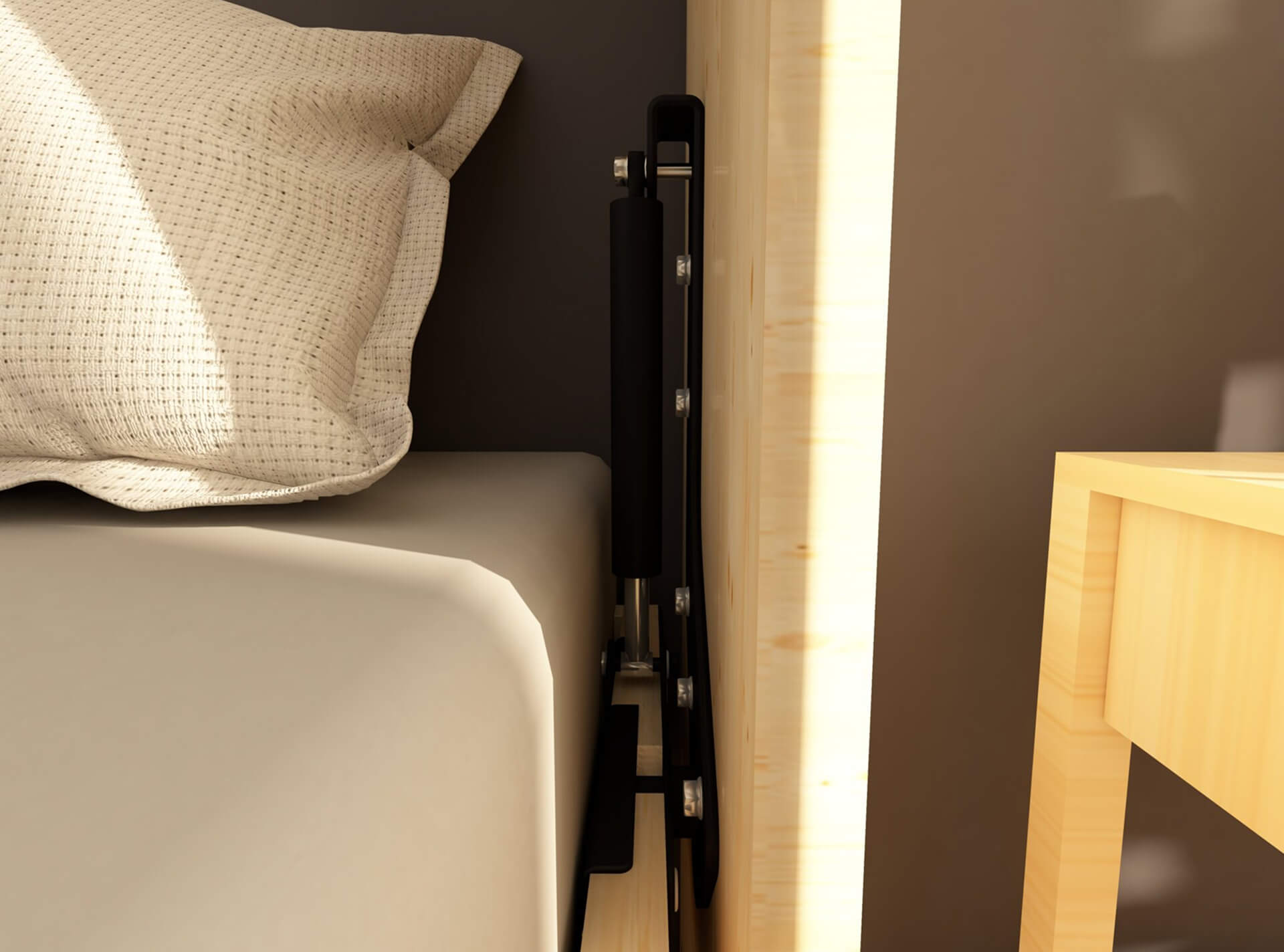- Ruimtebesparend klapsysteem – naar keuze verticaal of horizontaal opklapbaar; overdag stijlvol weggewerkt in een kast of strak tegen de wand.